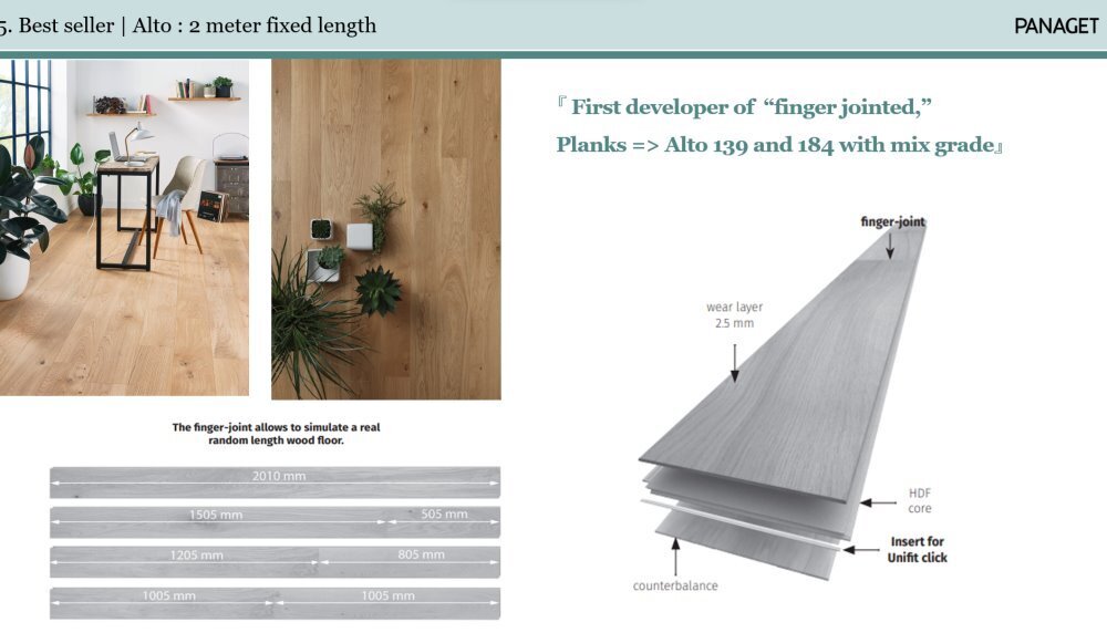 Oavsett om du väljer den ljusa elegansen hos Bois Flotté eller den djupa värmen i Chêne Amber, kommer Panaget Alto-serien att tillföra ditt hem en subtil lyx och en tidlös charm som bara blir vackrare med åren.