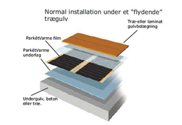 Den flexibla och effektiva lösningen för att få ett varmt trägolv. Parkettvärme lämpar sig för montering direkt under trä- eller laminatgolv. Med endast en halv millimeters tjocklek bidrar folien inte till någon betydande bygghöjd. Tillsammans med Parkettvärme används en 5 mm underlagsisoleringsplatta. Vi rekommenderar HandyHeat PV-underlag.