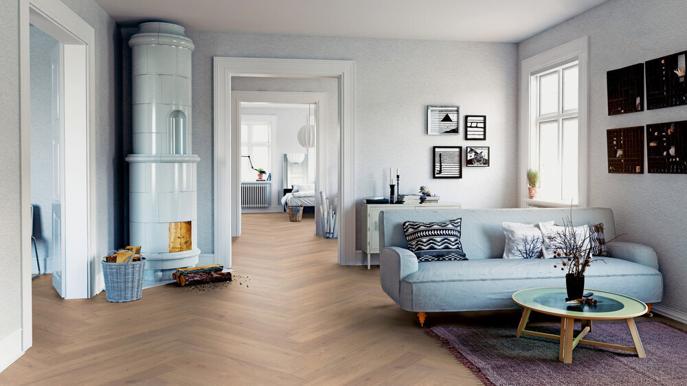 Ter Hürnes fiskben – klassiskt mönster med modern kvalitet. Fiskbensmönstret är tidlöst, elegant och fullt av karaktär. Med Ter Hürnes fiskbensgolv får du det ikoniska och precisa parkettuttrycket, där varje element läggs med omsorg för både mönster och hantverk. Golven limmas helt för optimal stabilitet och en exklusiv finish – perfekt för bostäder där detaljerna gör skillnad.