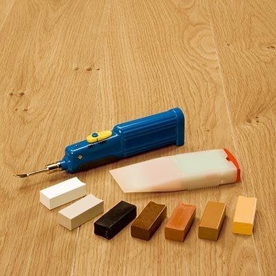 Kan reparera en skada på en planka snabbt och enkelt med vax som täcker hela Pergos träsortiment.