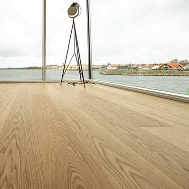 De olika typer av efterbehandlingar som vi erbjuder understryker husets unikhet och ägarens personlighet. Plankgolv i ek skapar en äkta atmosfär av komfort och lugn i hemmet samt en mycket behaglig yta att gå på. Robust och hållbart — ek har länge använts vid golvproduktion och ger ett vackert utseende och lång livslängd åt ditt nya ekgolv. Du kan lugnt räkna med ett fint resultat i årtionden.